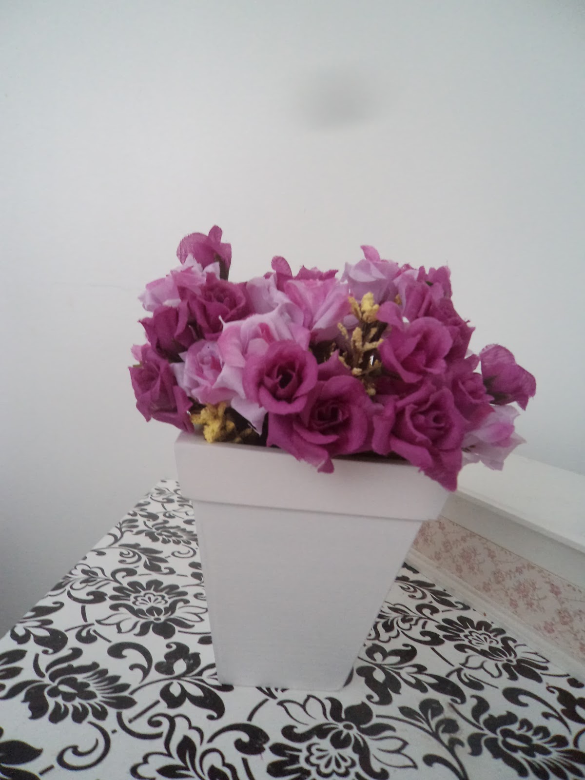 Todo mundo sabe que eu adoro flores em casa, mas é muito difícil manter as plantas sempre floridas. Assim, resolvi montar um vaso de flores artificiais para ter sempre um cantinho florido no meu quarto.